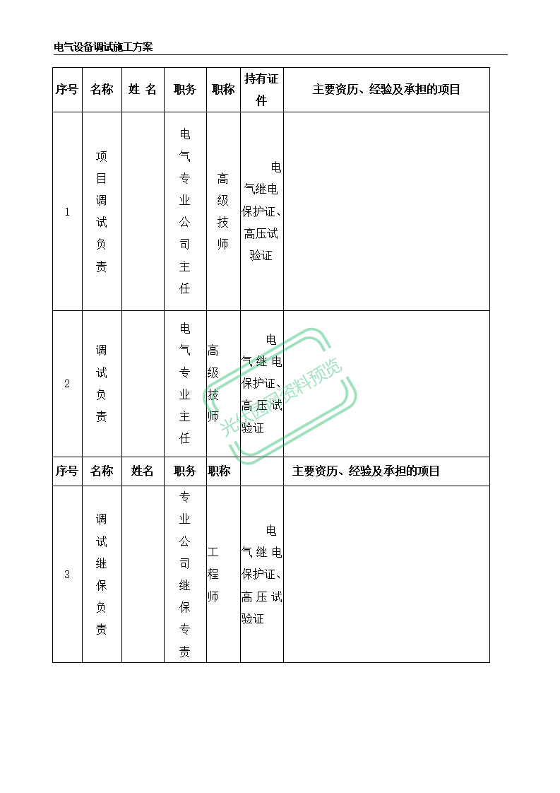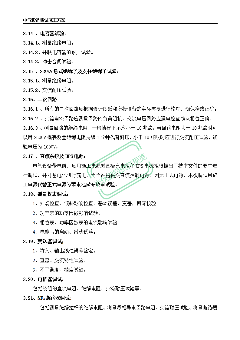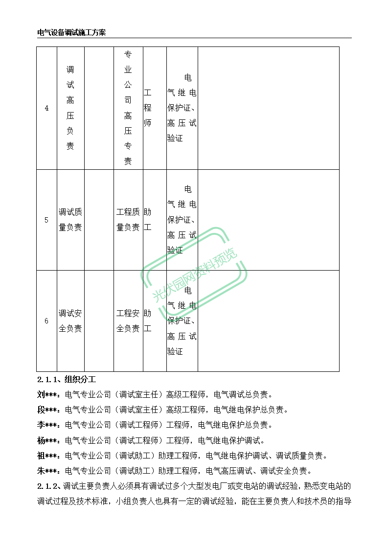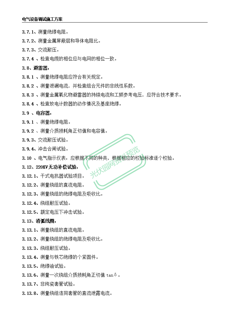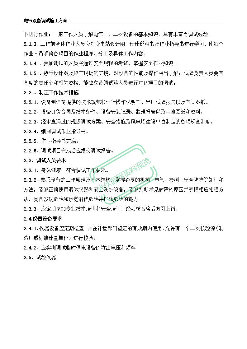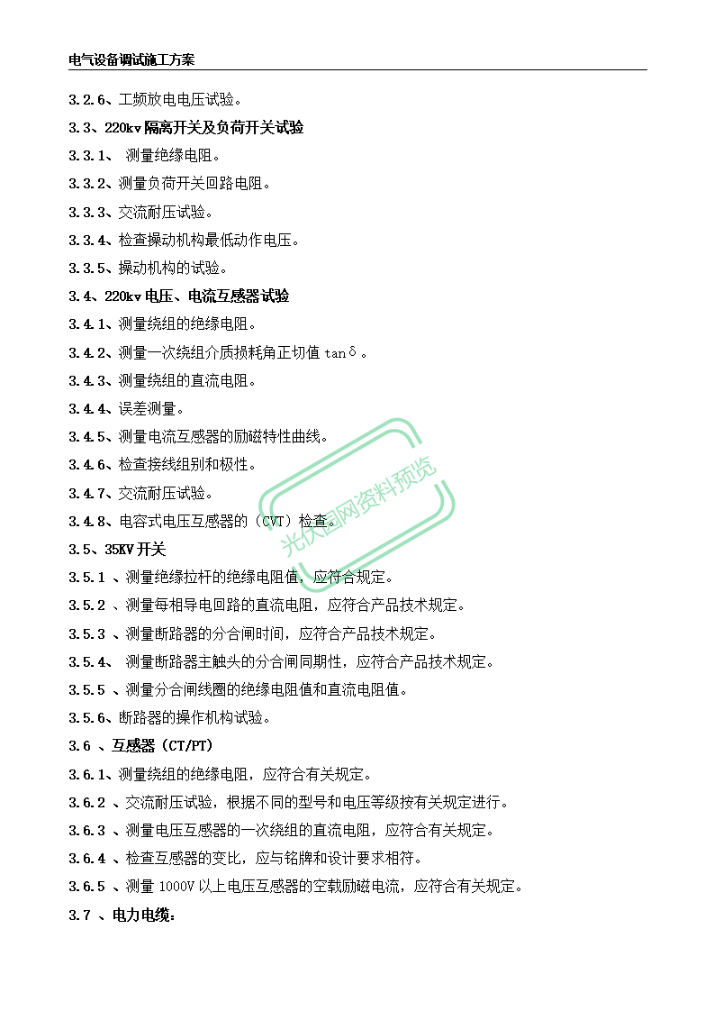 4、本资料从人员配置、仪器要求、试验流程、安全管控、质量保障等维度,构建了风电项目220kV升压站电气系统调试的完整实施体系,为相关电气调试工作提供了全面的技术参考,本资料仅供参考学习,不可用于项目施工。