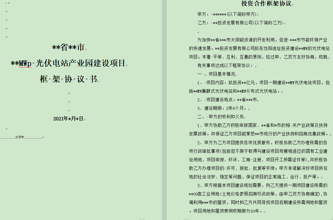 word,4页,XX人民政府&XX投资集团 百度网盘资源