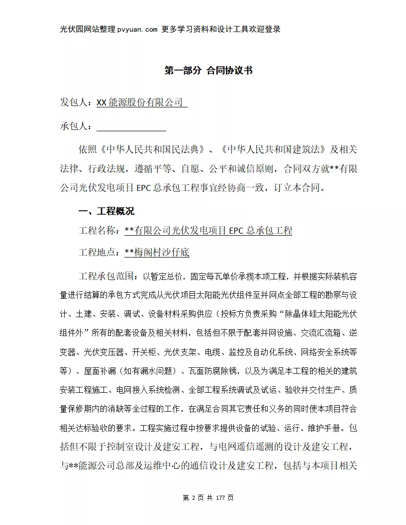 某电网公司分布式光伏EPC总承包合同(word,171页)