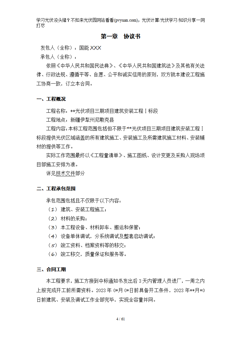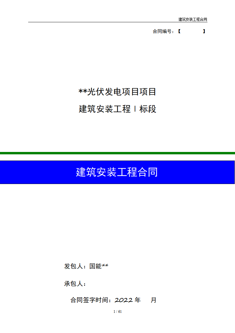 【合同范本】国能集团光伏项目建设安装施工合同范本(word)