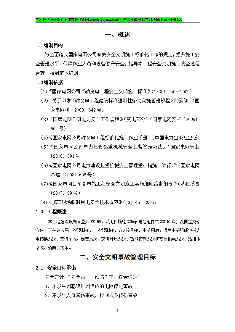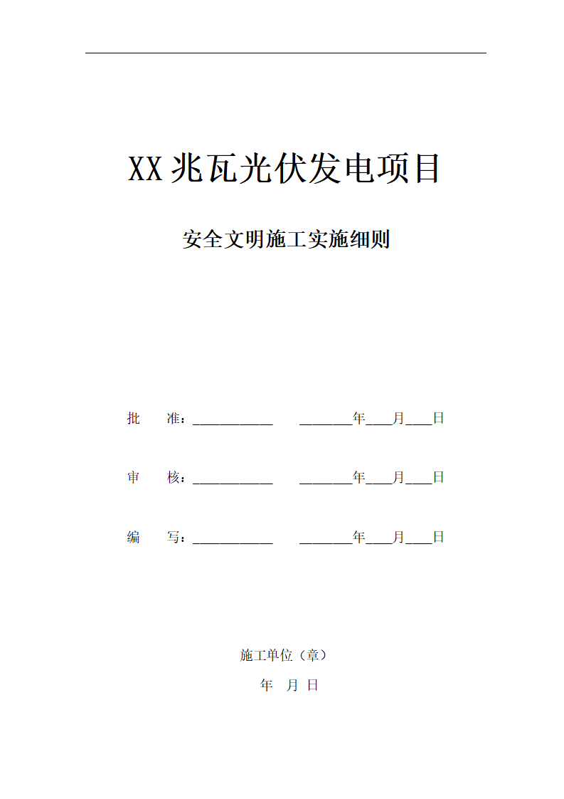 【方案】XX兆瓦光伏发电项目安全文明施工实施细则