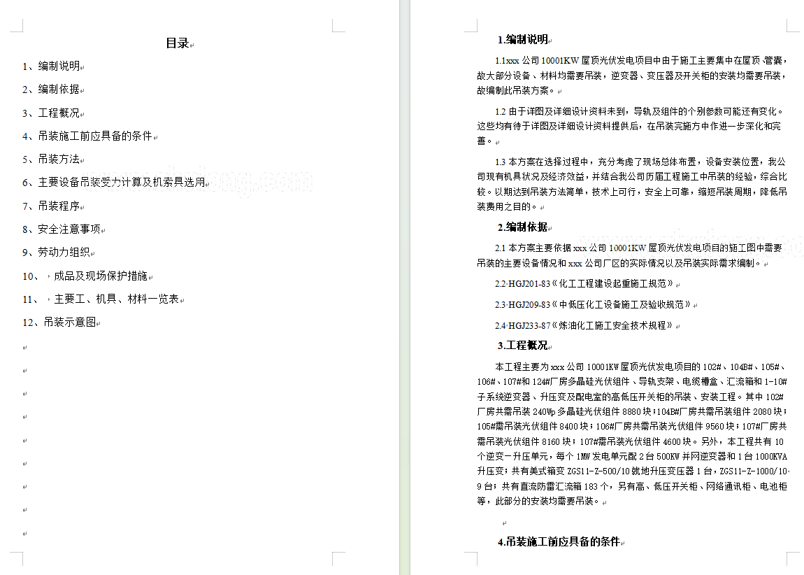 中化XX公司10001KW屋顶光伏发电项目