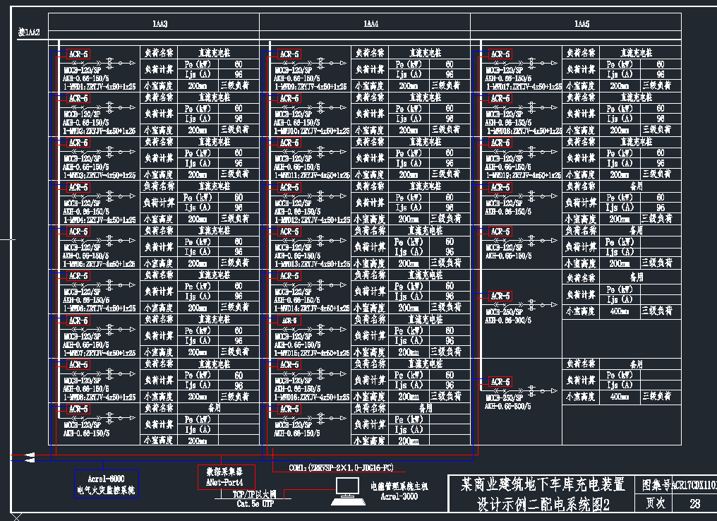 该商业建筑地下车库为二层,每层分二个防火分区,每个防火分区设置停车位80~100个,共设置停车位345个。按照住建部充电设施不少于10%的配建标准要求,设置35个公共充电桩车位(地下一层20个,地下二层15个)地下一层设置AEV-DC60SLAG双枪落地式直流充电桩9个,AEV-DC60SLAG单枪落地式充电桩2个,地下二层设置AEV-DC60SLAG双枪落地式直流充电桩7个AEV-DC60SLAG单枪落地式充电桩1个,额定功率均为60kw,输入电压380V(三相五线),以满足顾客快速充电的要求,并预留交流充电供电条件。