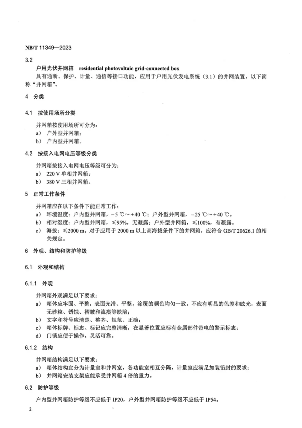 【规范】户用光伏并网箱技术规范NBT11349-2023