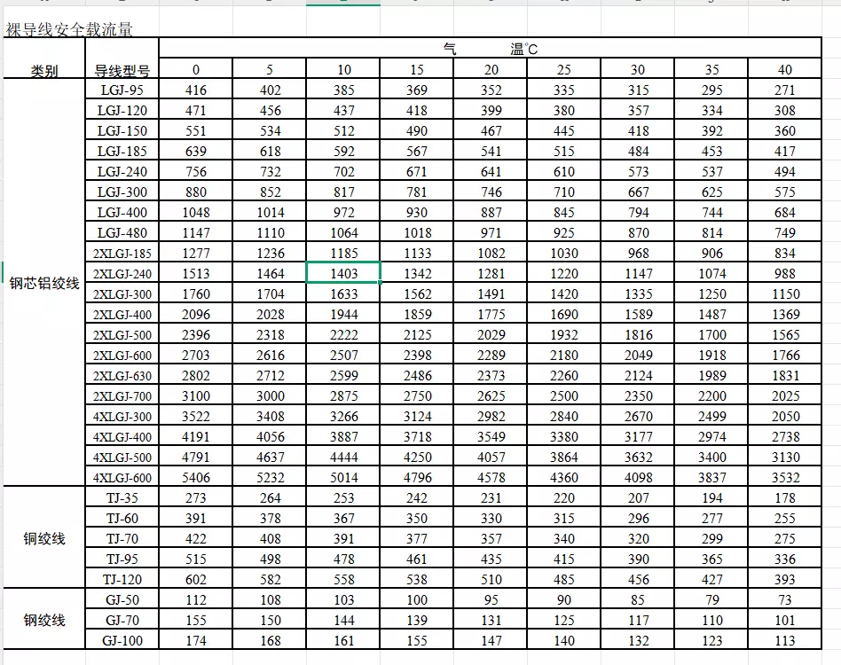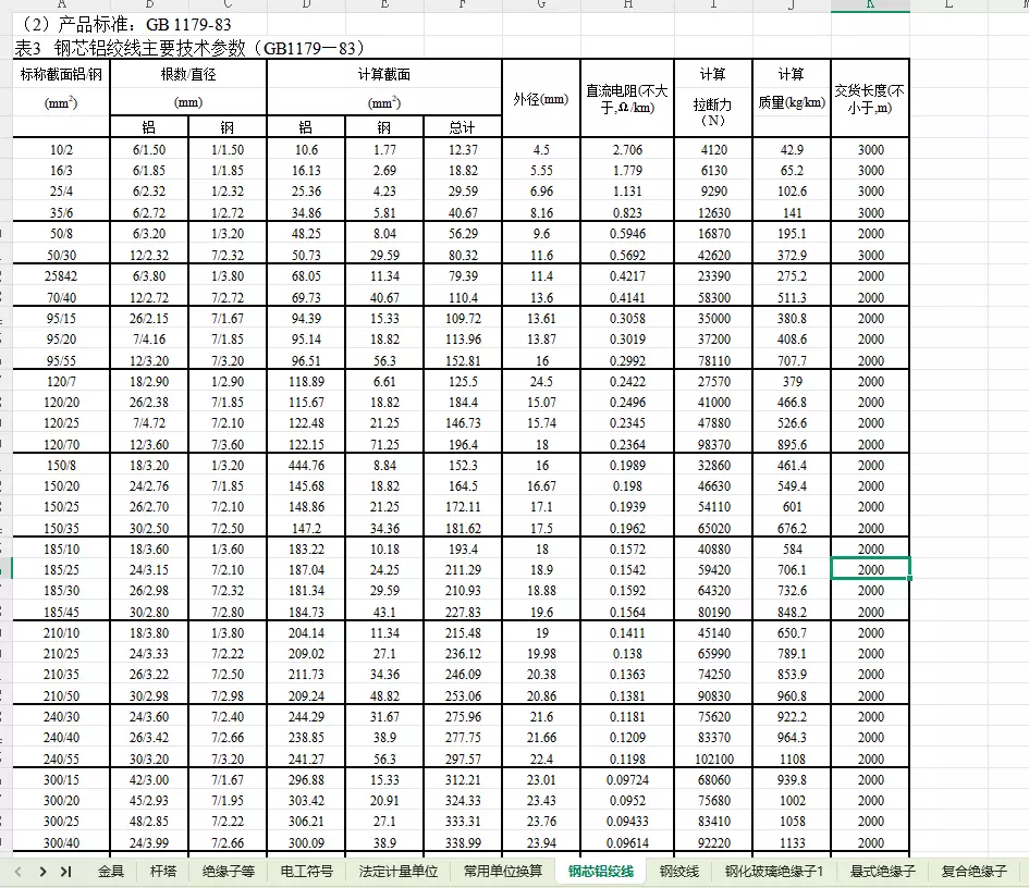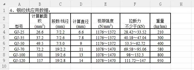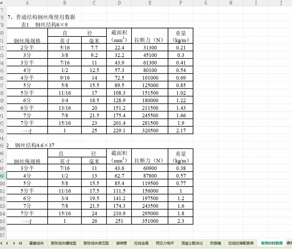 架空电缆施工参数速查手册(Excel)