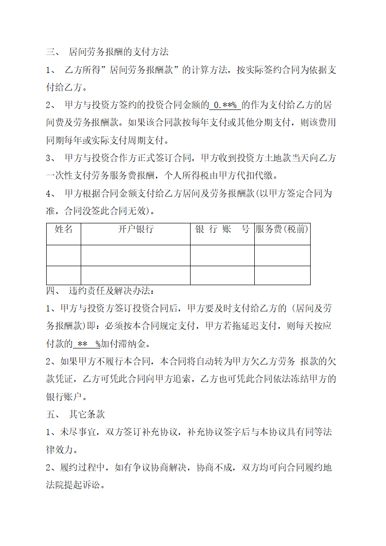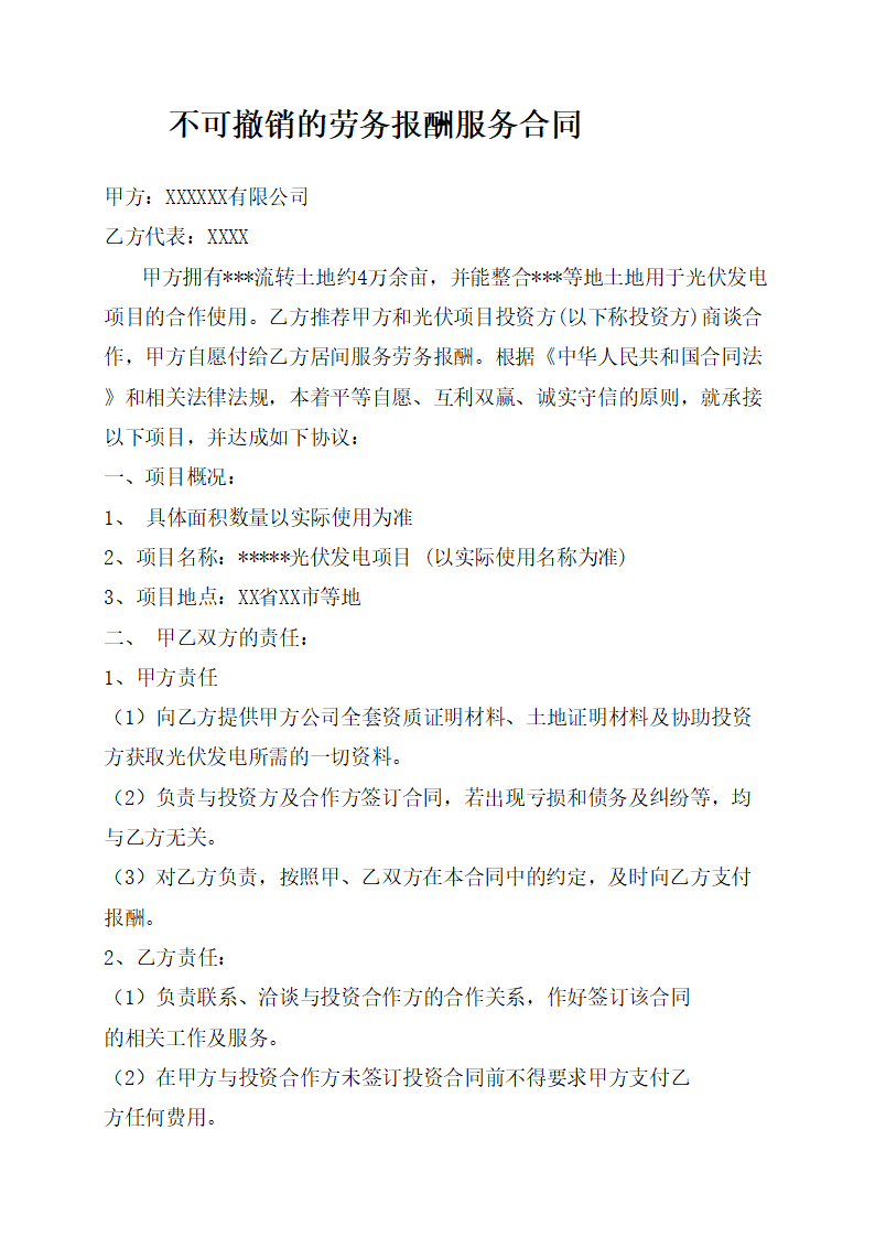 光伏发电项目居间服务合同 (不可撤销的劳务报酬服务合同)