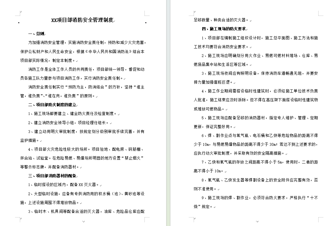 施工项目部消防管理制度(word,可编辑)