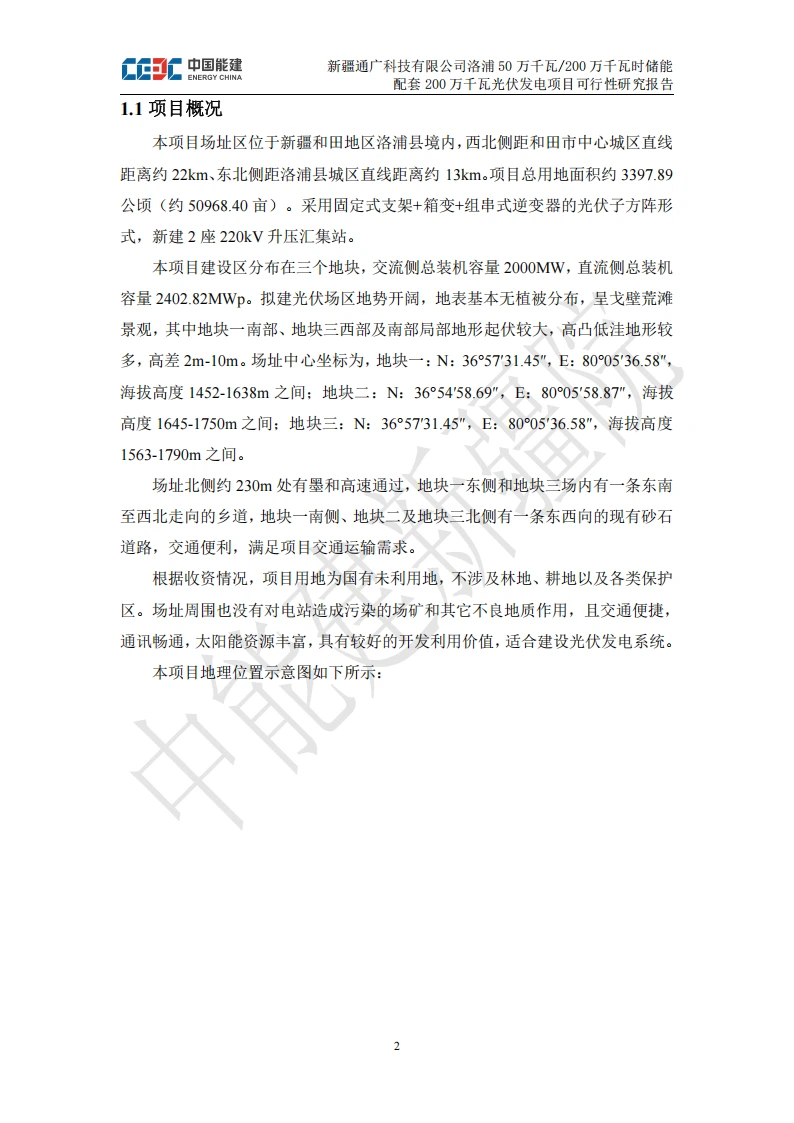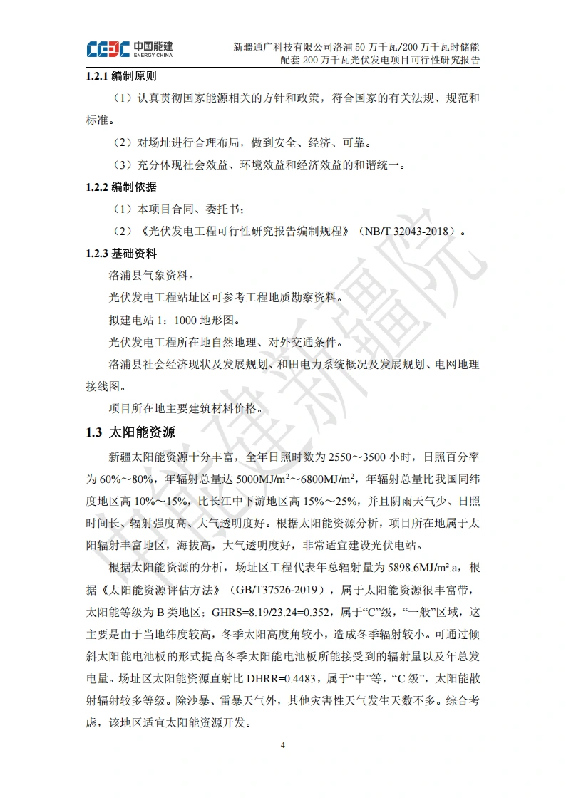 中能建-某50万千瓦/200万千瓦时储能配套200万千瓦光伏发电项目可行性研究报告.pdf