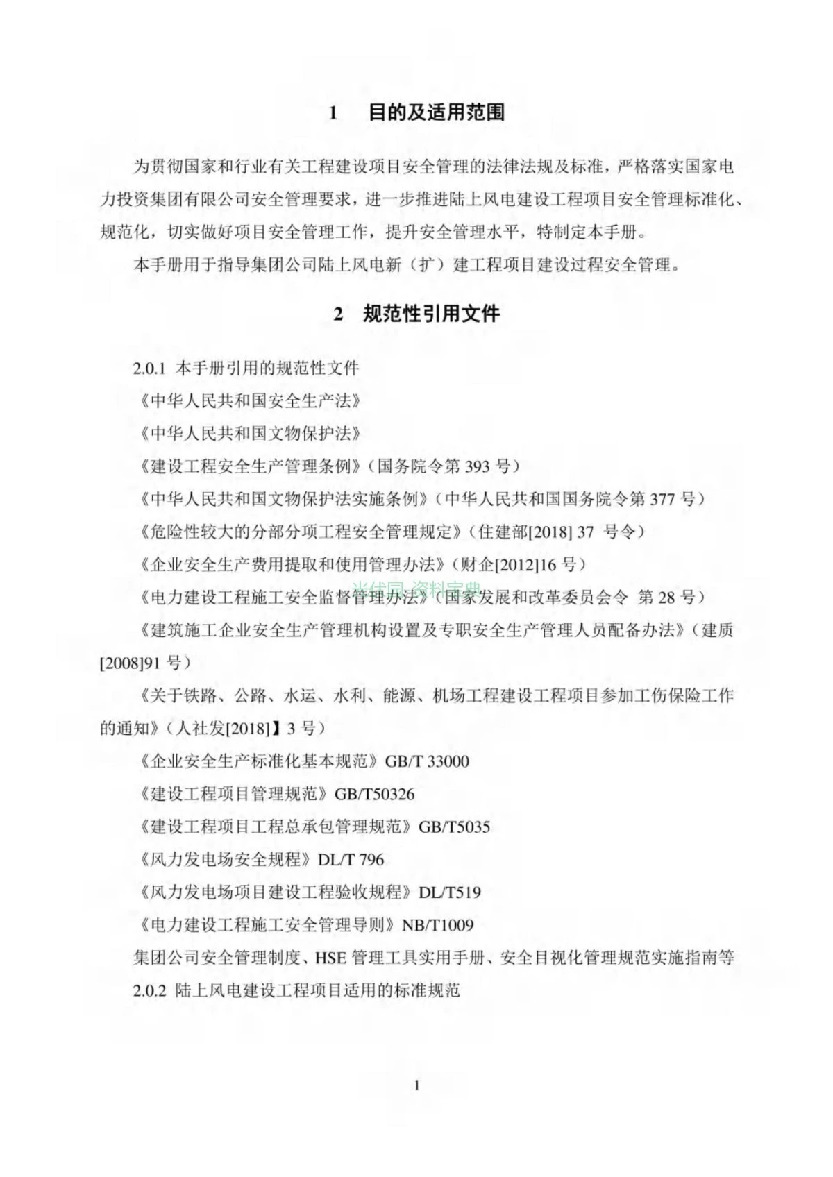 某央企陆上风电建设项目安全管理标准化手册