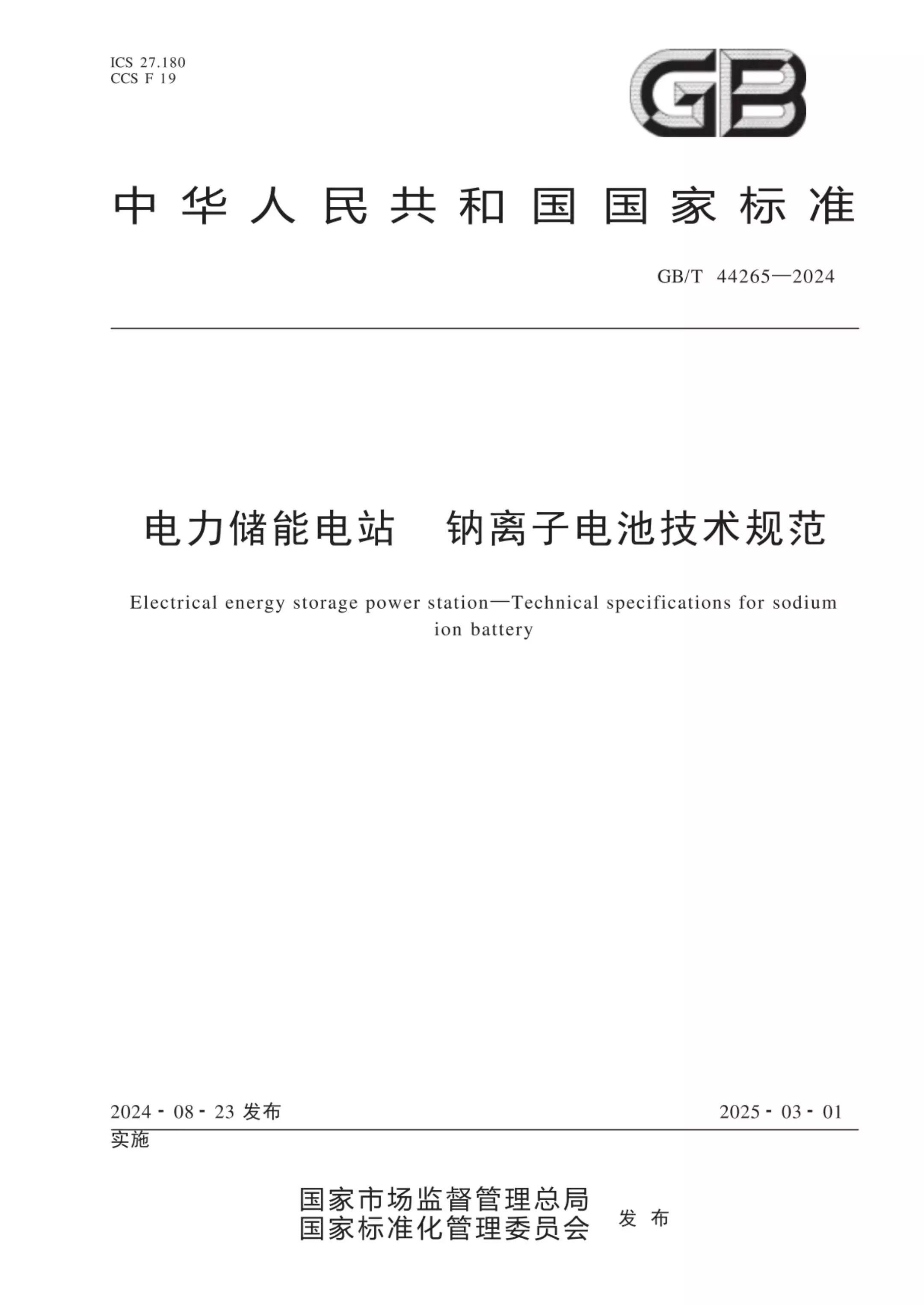 电力储能电站钠离子电池技术规范(GBT44265-2024)