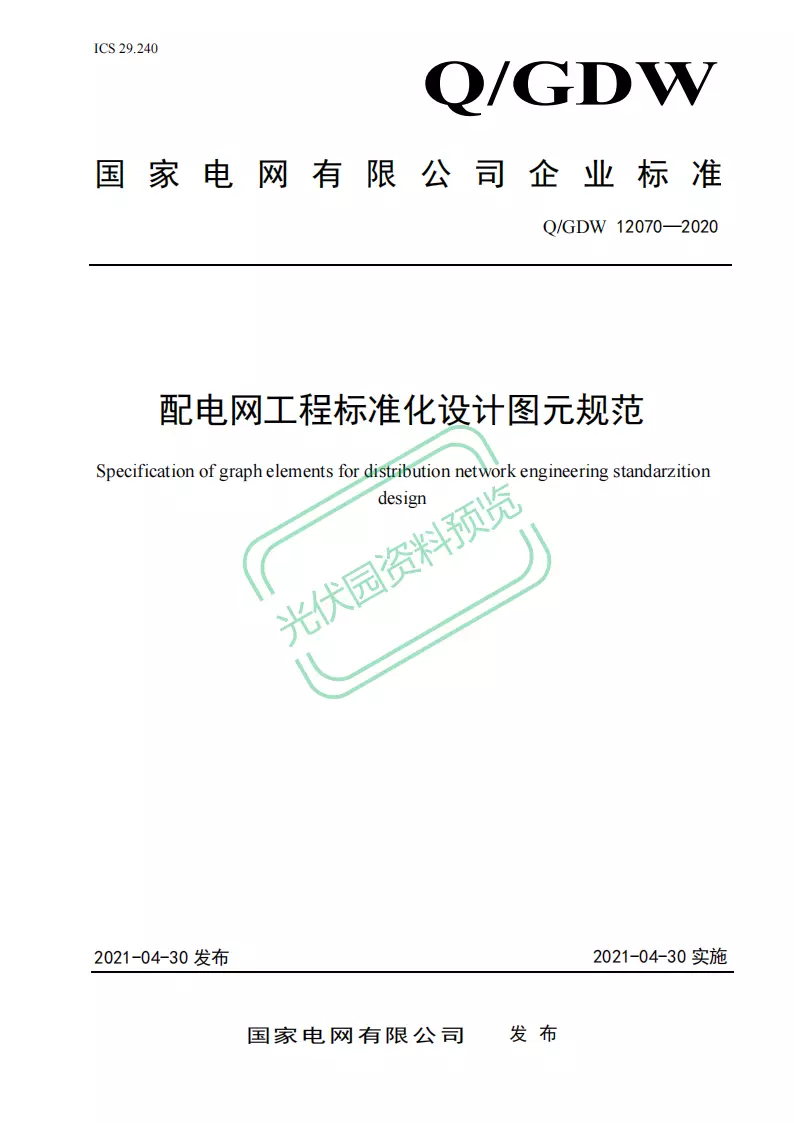 本文提供国家电网有限公司企业标准《Q/GDW 12070-2020 配电网工程标准化设计图元规范》完整资料下载,该标准规定了10kV及以下配电网工程设计中电气图图元、线路图图元的总体原则、基本要求、样式规范及图元块属性,适用于配电站房、变台电气系统配置图、电气主接线图及架空/电缆线路路径图的绘制,20kV配电网工程可参照执行。