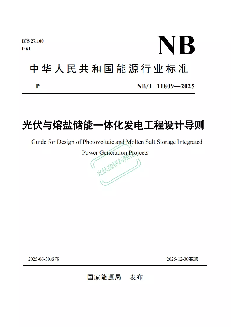 1.0.4 光伏与熔盐储能一体化发电工程设计,除应符合本导则外,尚应符合国家现行有关标准的规定。