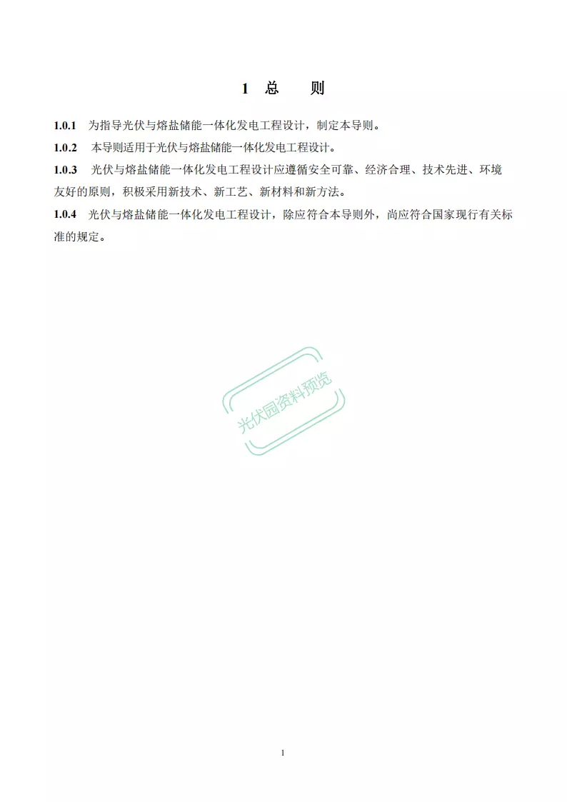 1.0.1为指导光伏与熔盐储能一体化发电工程设计,制定本导则。