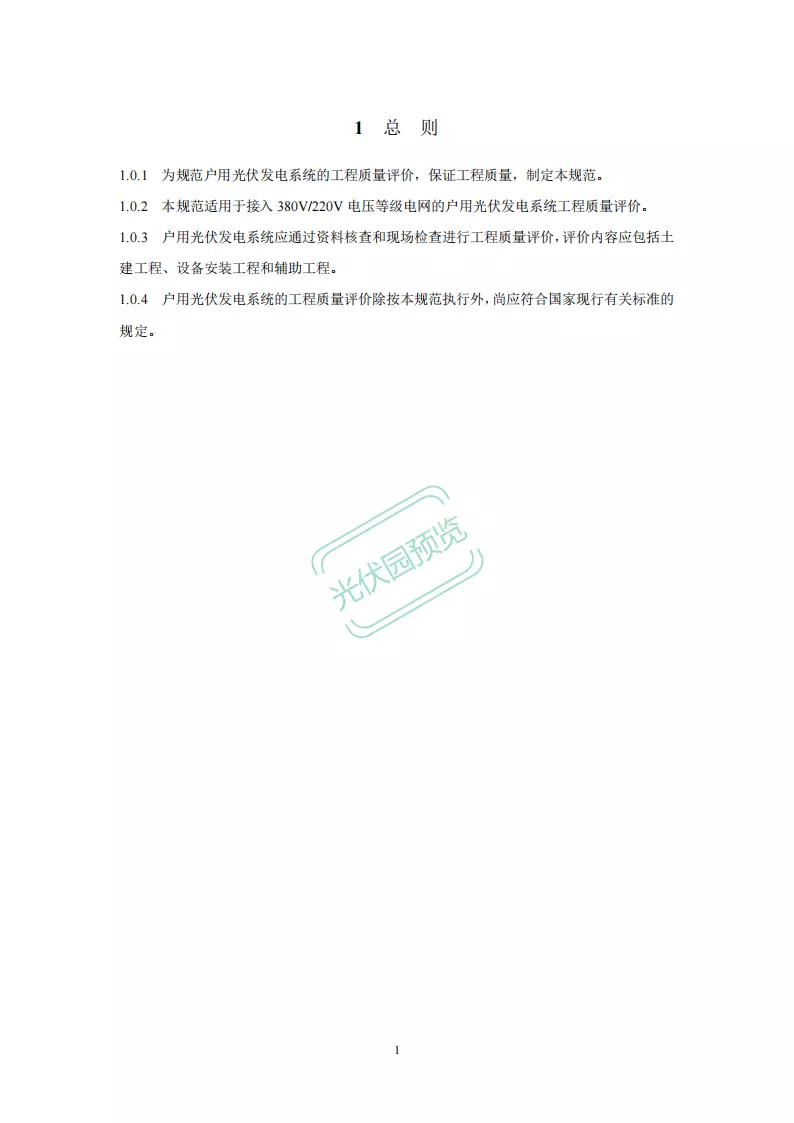 1.0.1 为规范户用光伏发电系统的工程质量评价,保证工程质量,制定本规范。