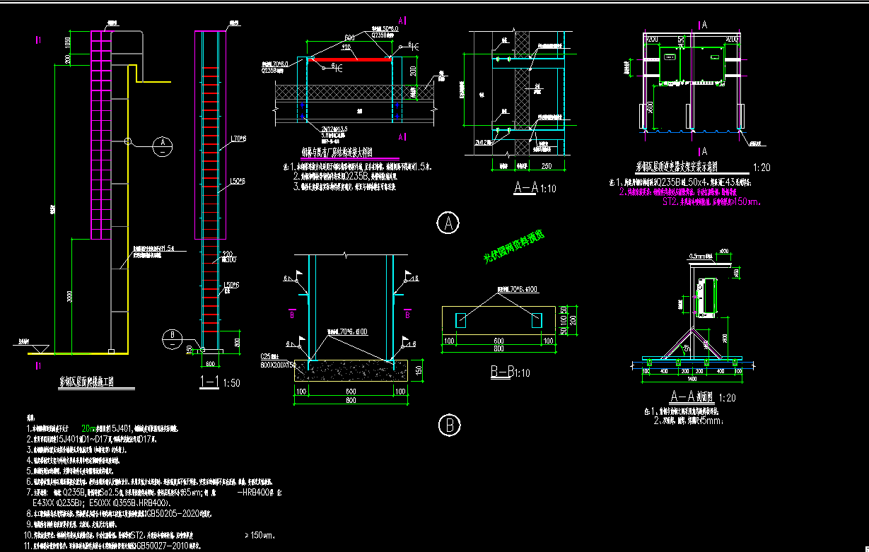 彩钢瓦屋面爬梯施工图/屋顶逆变器支架安装示意图