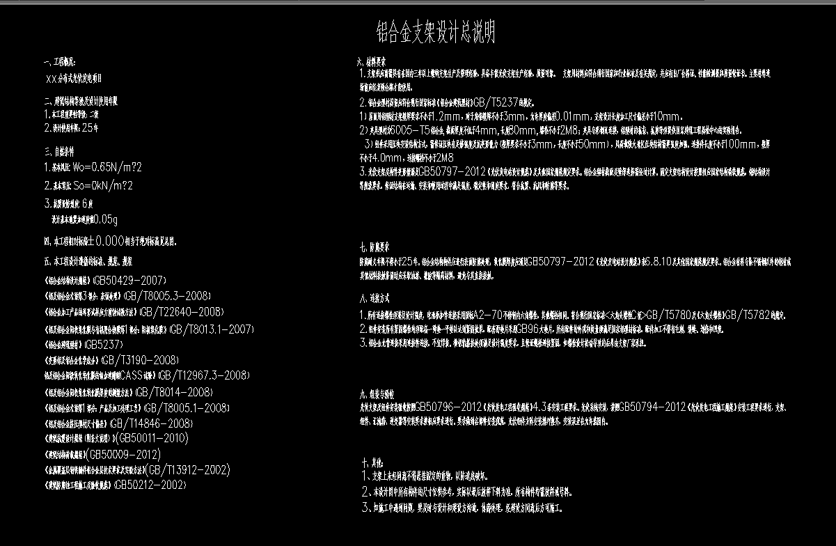 铝合金支架设计总说明