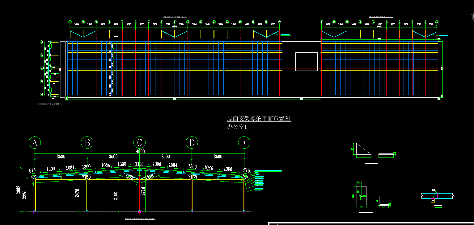 办公室1屋面檩条、夹具布置图
