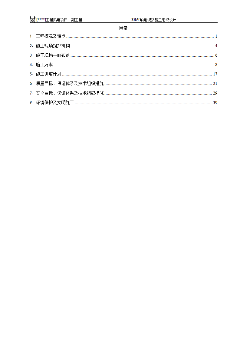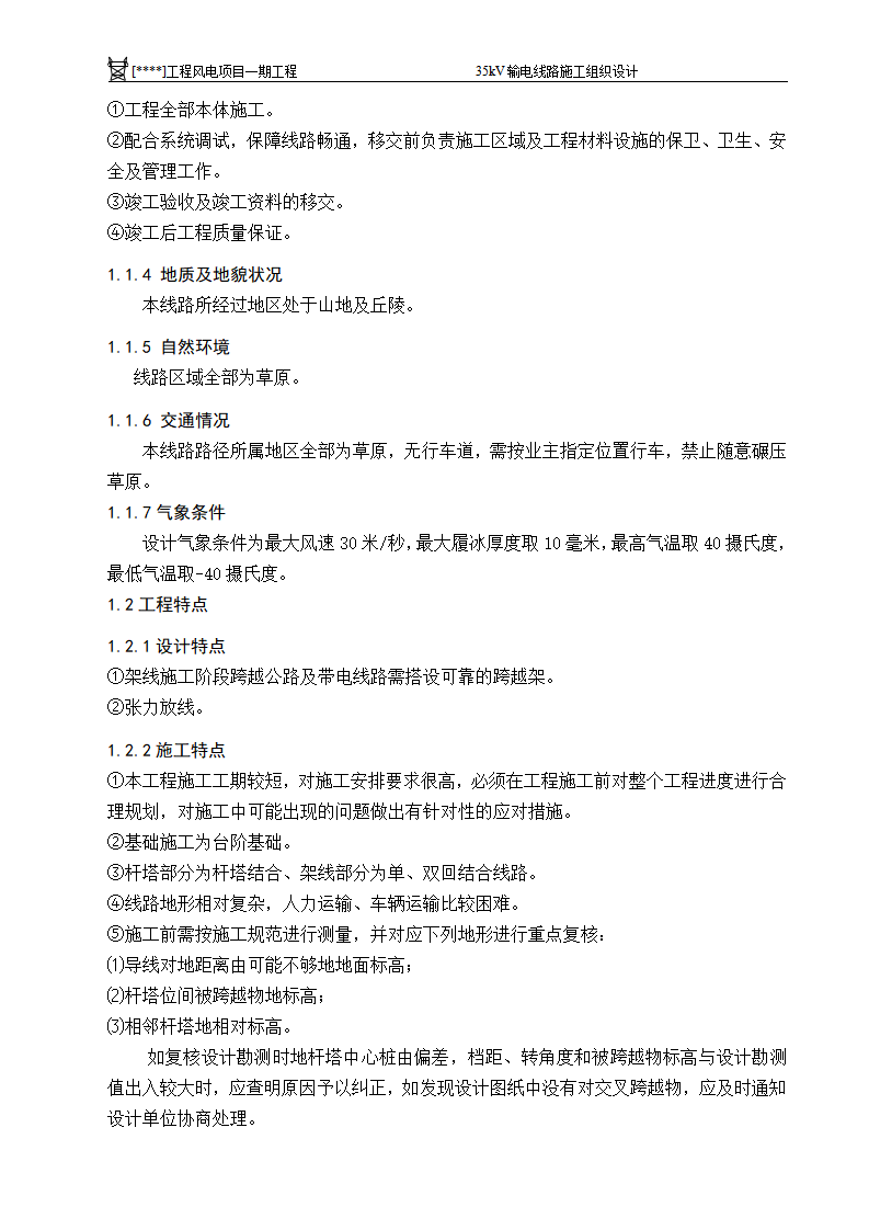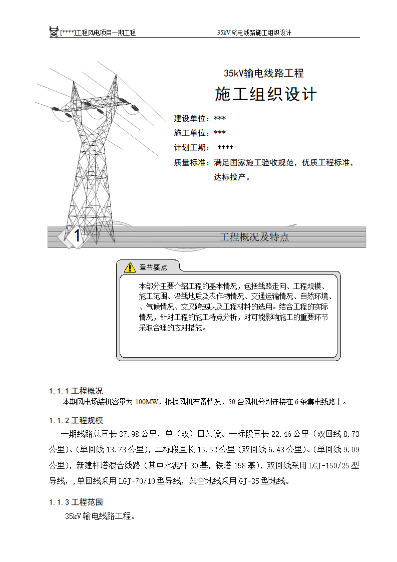 某100MW风电项目35kV输电线路施工组织设计(WPS,46页)