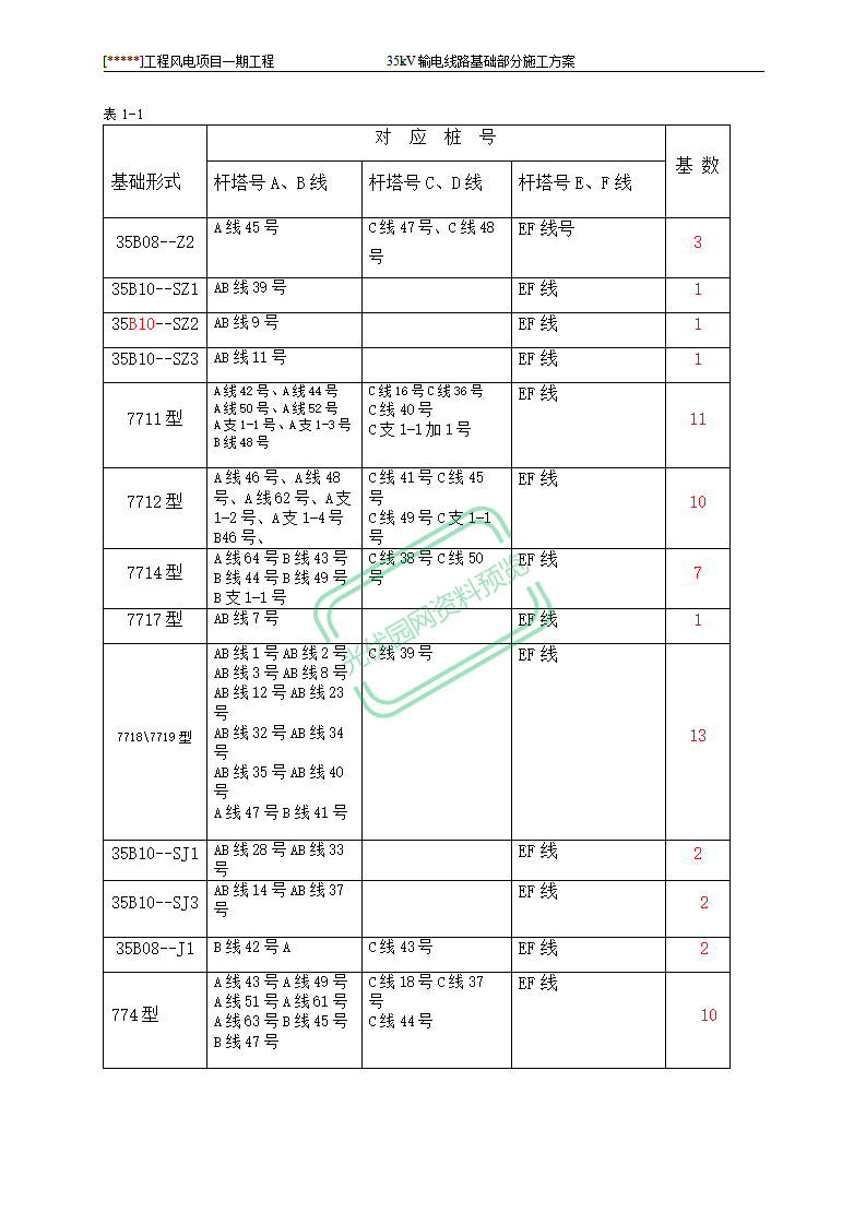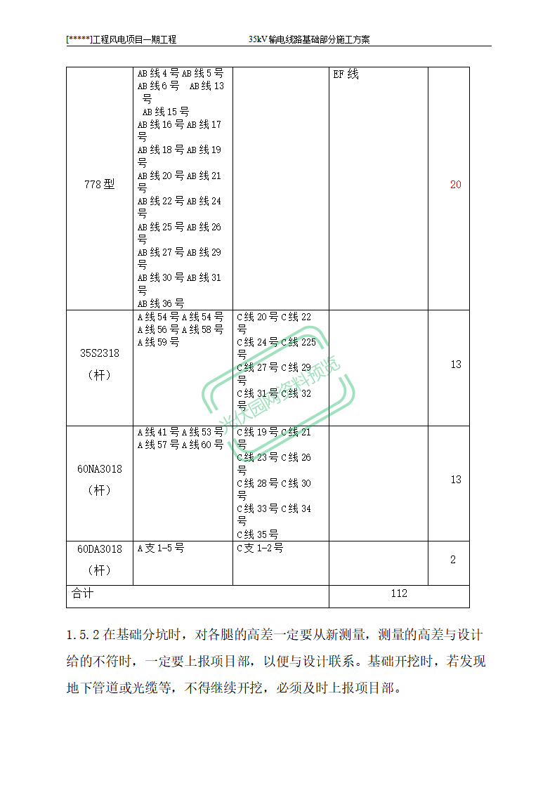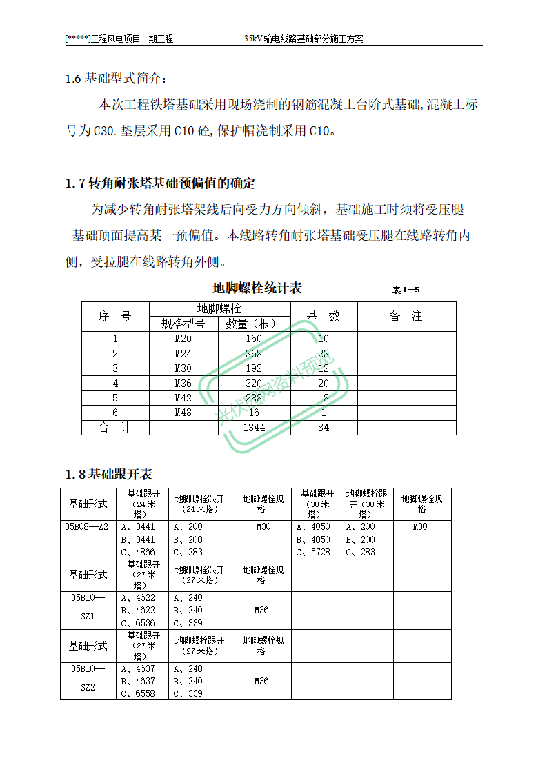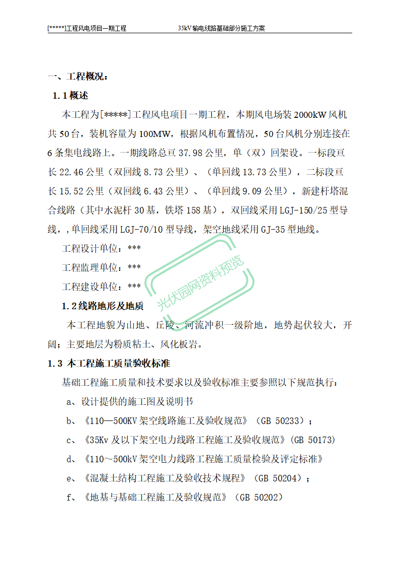 100MW风电项目架空线路基础作业...