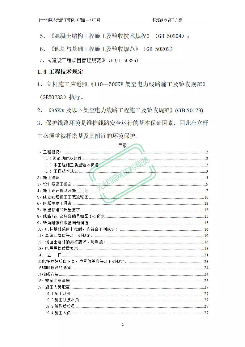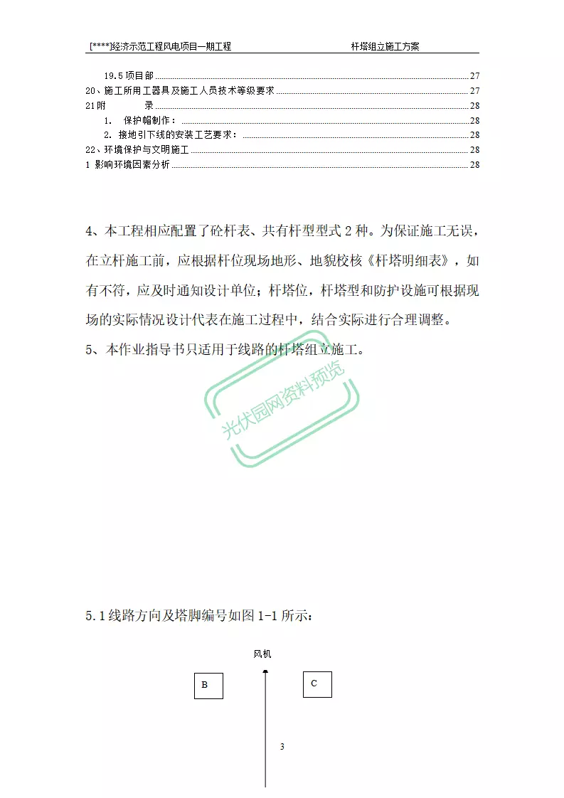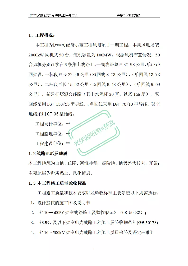 100MW风电项目架空线路基础作业...