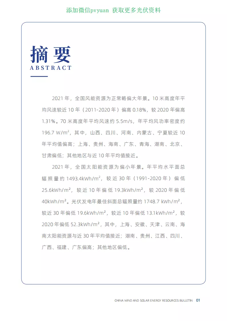 2021年中国风能太阳能资源年景公报(中国气象局)