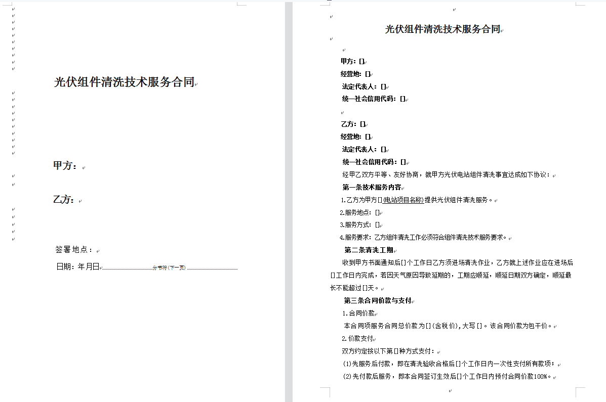 光伏电站运维-光伏组件清洗服务合同